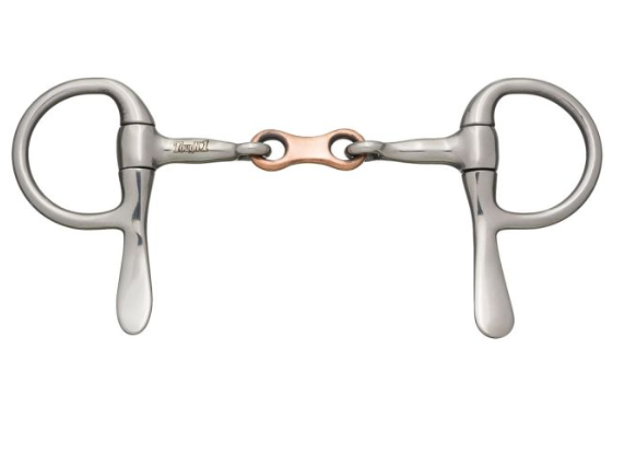 This durable, stainless steel half cheek driving bit features a French link mouthpiece that distributes pressure more evenly across the tongue than single-jointed bits. The copper link also helps promote salivation. The half cheek style helps with stability during turns when driving and prevents the bit from slipping through the mouth.